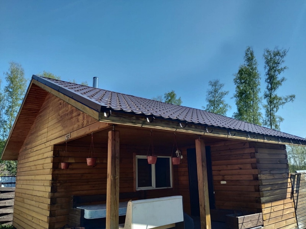 Отдельного внимания заслуживает баня. Размер 7 * 6 . Из профилированного бруса. С комнатой отдыха и открытой террасой.