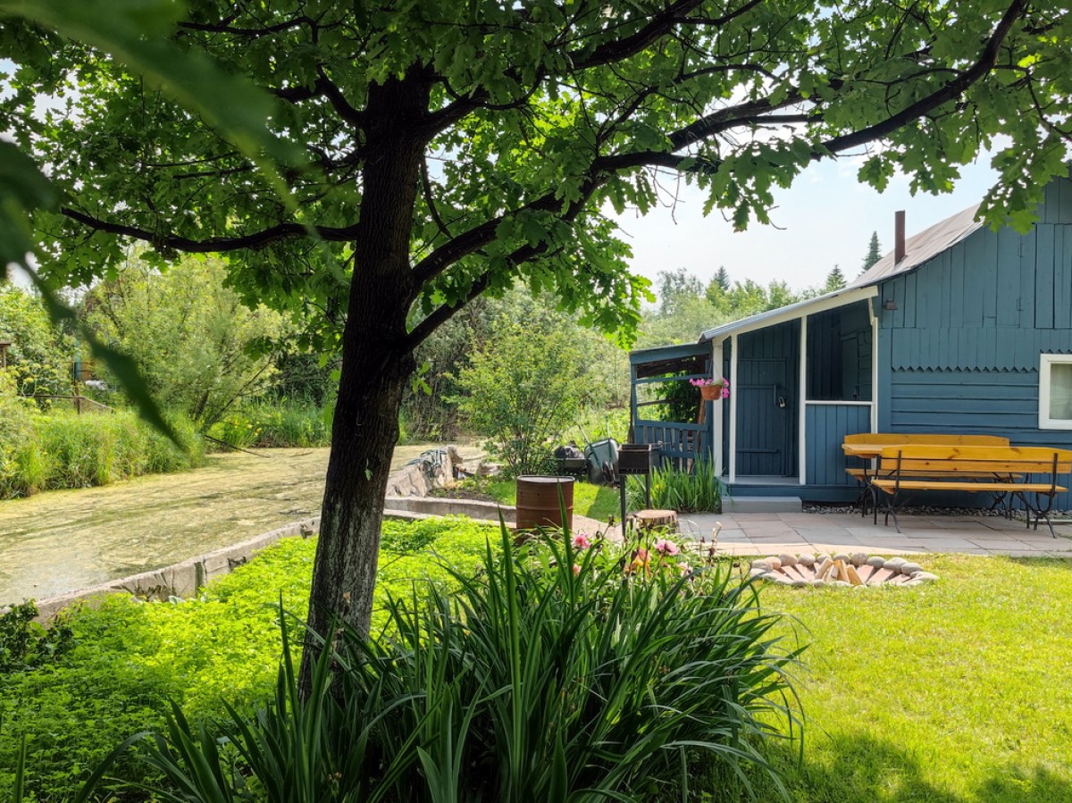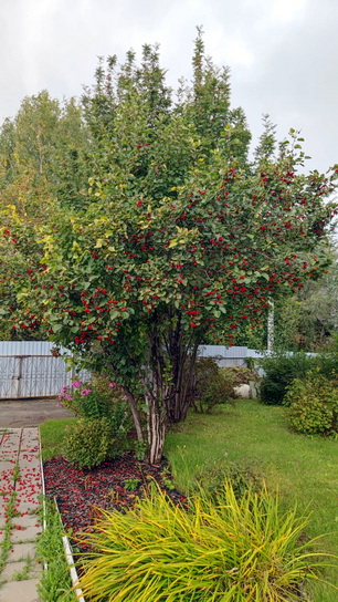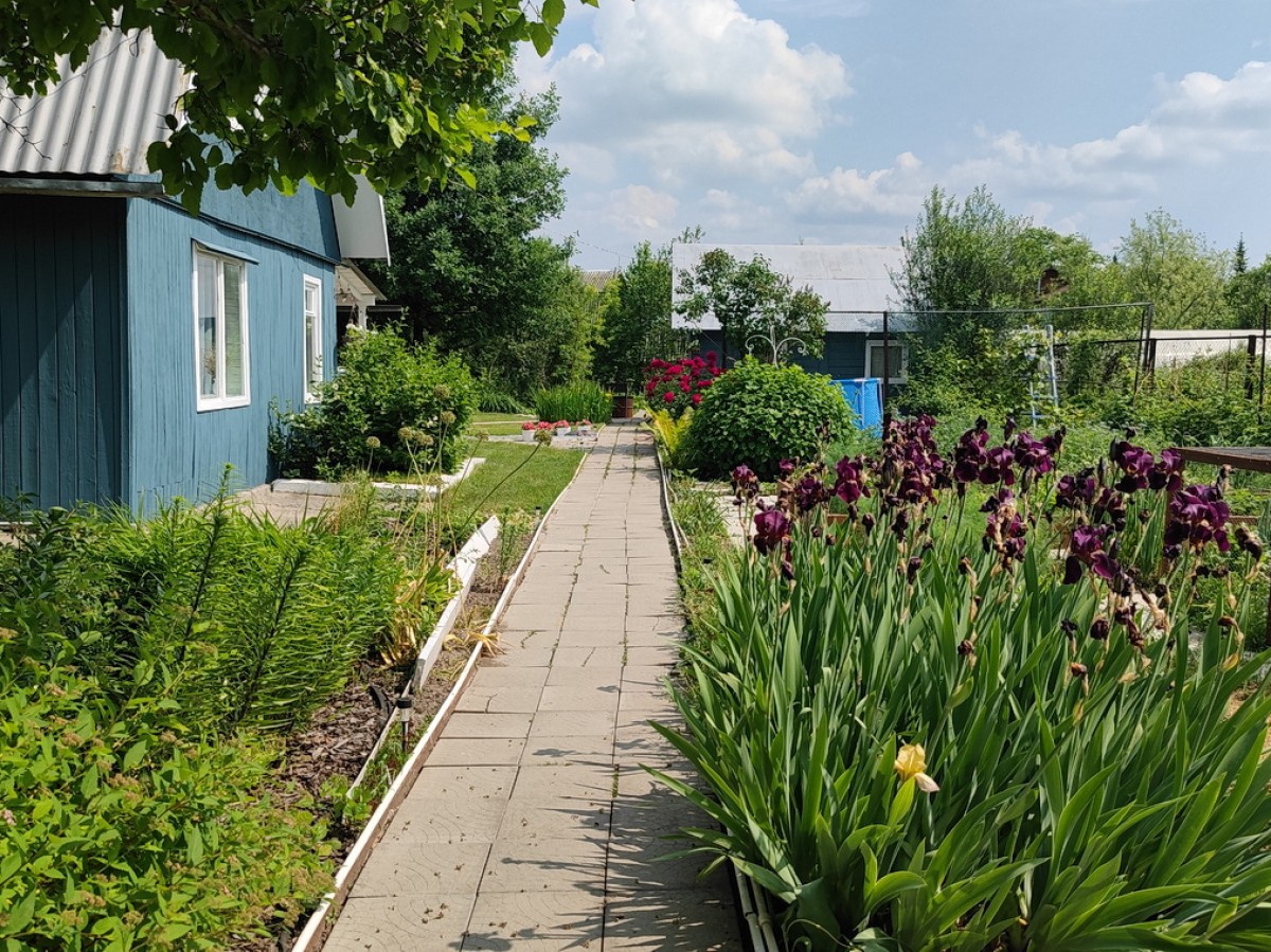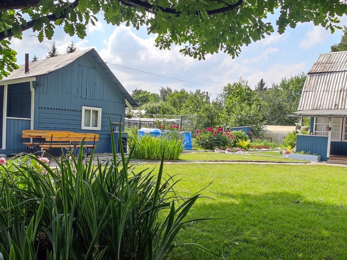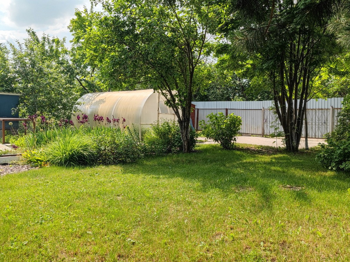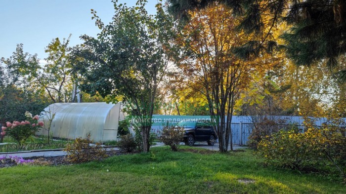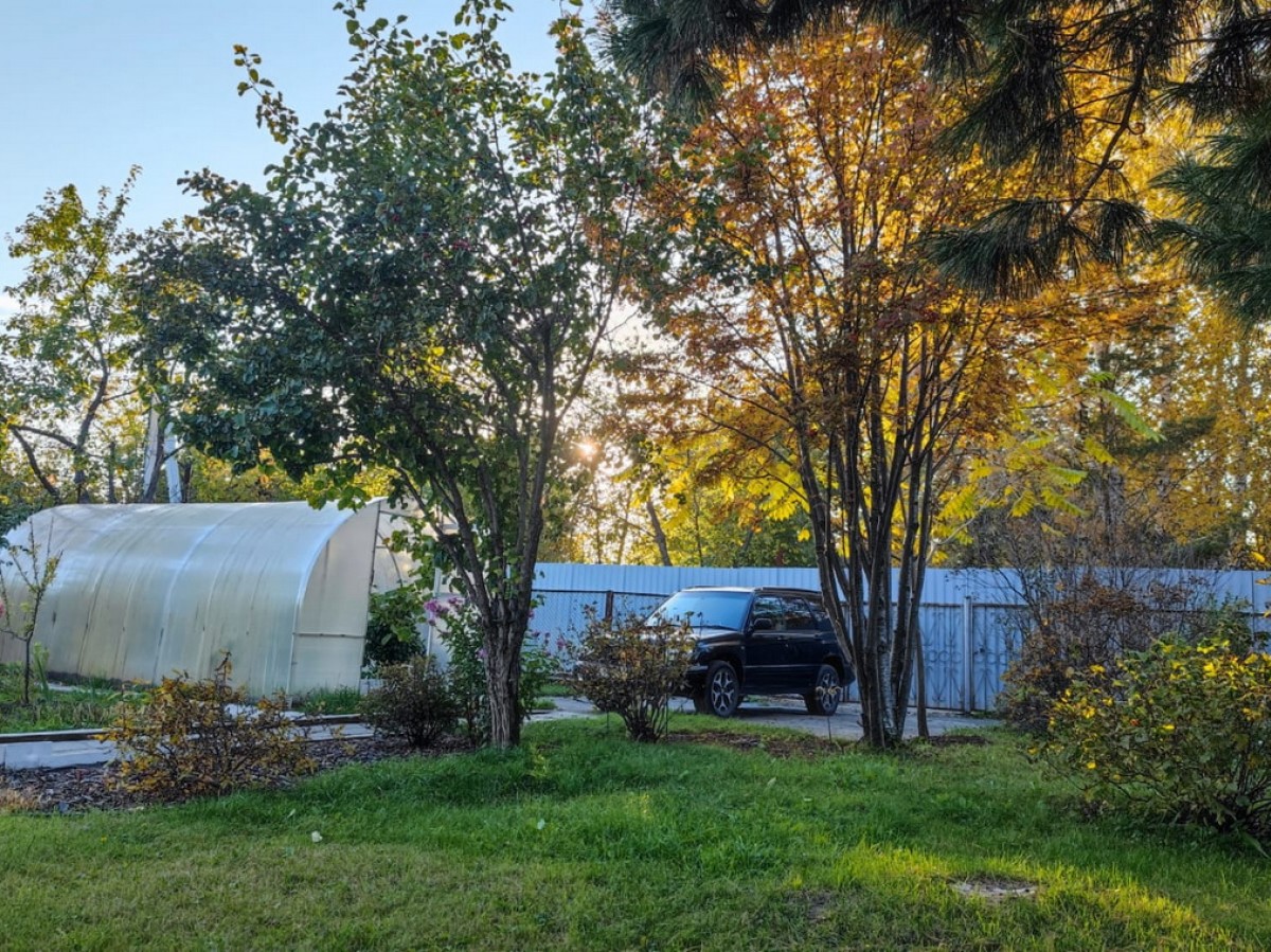 Посадки (яблони, виноград, клубника, смородина, малина, жимолость, ирга, облепиха, крыжовник, вишня). На участке также растет кедр, дуб, туя, можжевельник, маньчжурский орех, рябина, сирень.