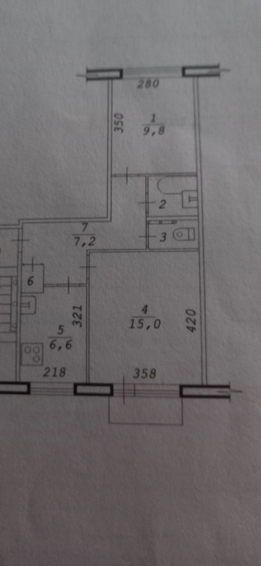 Площадь 44/26/7м²